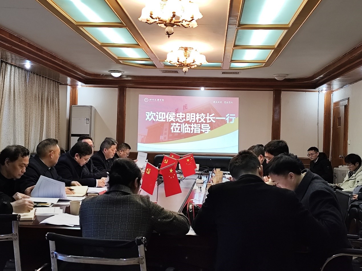 2024年3月5日,校长侯忠明率队到南坝校区人工智能与大数据学院调研申硕工作,并主持召开座谈会。党委副书记朱兴华、党委常委、组织部部长涂德祥以及党办(校办)、教务处、人事处、科技处、计划财务处、发展规划处相关负责人随同调研。人工智能与大数据学院副处以上干部、教研室主任、申硕工作相关人员参加座谈会。